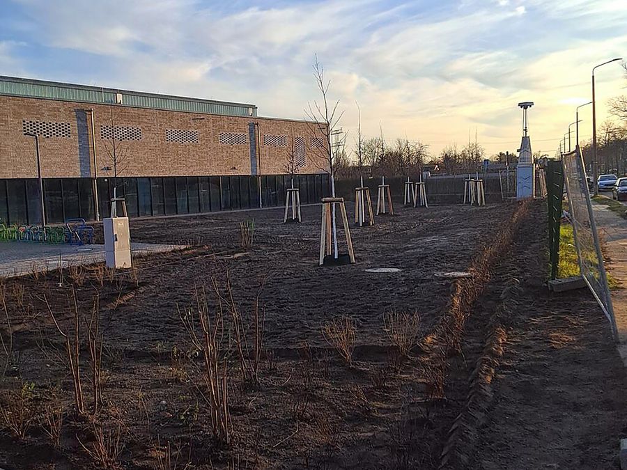 Insbesondere die Pflanzung verspricht ein echter Hingucker zu werden, davon über 300 m² Fläche mit heimischen Gehölzen, die einen wichtigen Beitrag zum Artenerhalt in der Großstadt leisten werden. Darüber hinaus entstanden Bewegungs- und Spielflächen, funktionale Elemente wie eine Feuerwehrzufahrt sowie Einrichtung zur Regenentwässerung sowie Ausstattungselemente wie z.B. ein Fahrradparker und ein grünes Klassenzimmer.