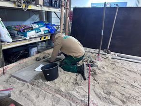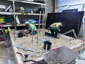 Der Winter zeigte sich in diesem Jahr von seiner kalten und weißen Seite, so dass bauliche Tätigkeiten kaum bis gar nicht möglich waren. Somit blieb genügend Zeit, sich der praktischen Ausbildung unserer Lehrlinge zu widmen. Hierzu wurde kurzerhand die Kleintechnik in unserer Halle beiseite geräumt und ein sogenannter „Übungssandkasten“ errichtet, der den Abmaßen in der praktischen Prüfung entspricht. Ganz gleich, ob direkte Prüfungsvorbereitung oder Festigung der bisherigen Kenntnisse, alle Lehrlinge nahmen an dieser Maßnahme teil. Somit ergab sich auch ein reger Austausch zwischen den einzelnen Lehrjahren, was für alle bereichernd war.