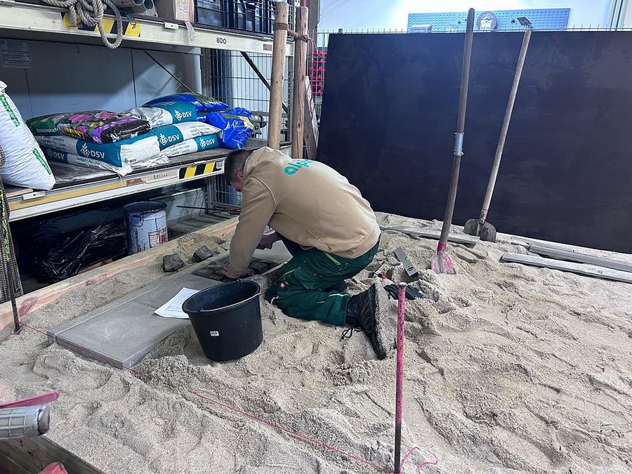 Von der einfachen Absteckung, über das Binden von Baumbefestigungen bis hin zur Pflasterung, wurden alle Bestandteile der praktischen Lehrausbildung vermittelt und gefestigt. Und wie man sehen kann, lassen sich die Ergebnisse durchaus sehen. Damit sollten unsere Lehrlinge gut gerüstet in die jeweiligen Prüfungen gehen und ihre erlernten Fähigkeiten im künftigen Berufsleben sicher anwenden.