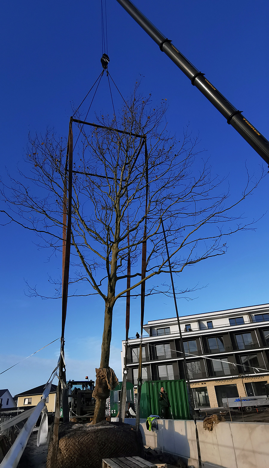 - Umfangreiche Pflanzarbeiten, darunter die Pflanzung von 20 Dachplatanen (Stammumfang 40/45) sowie