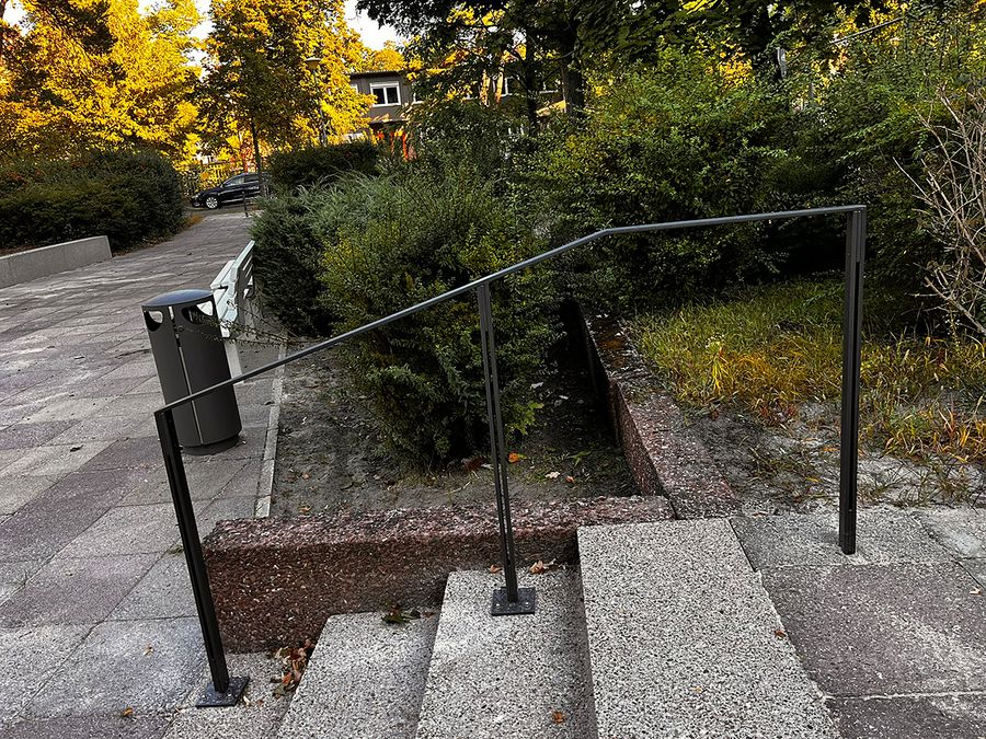 * Treppen- und Steganlagen: Bau einer komplett neuen Treppenanlage mit Handlauf, Errichtung einer modernen Steganlage aus Cortenstahl mit wurzelschonender Konstruktion zur Verbindung von Platz und Althoffstraße
